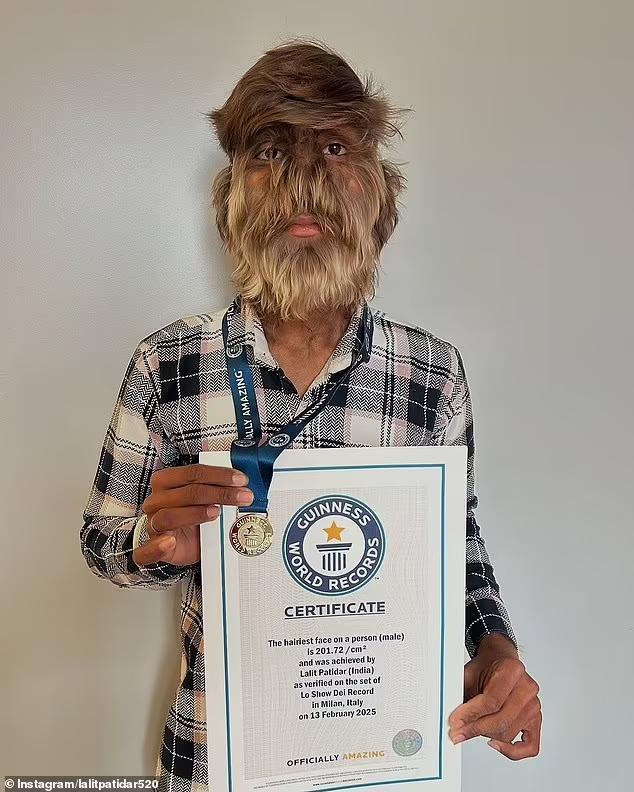 2025年2月13日,帕蒂达尔荣获了吉尼斯纪录中“面部毛发最多男人”的称号。