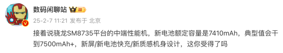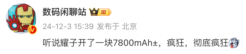 电池容量,也要达到大家喜闻乐见的 7000mAh 级别。