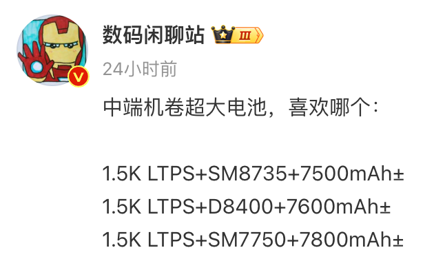 最近至少有 3 款机型将搭载 7500mAh 级别的电池,有的甚至能冲到 7800mAh。