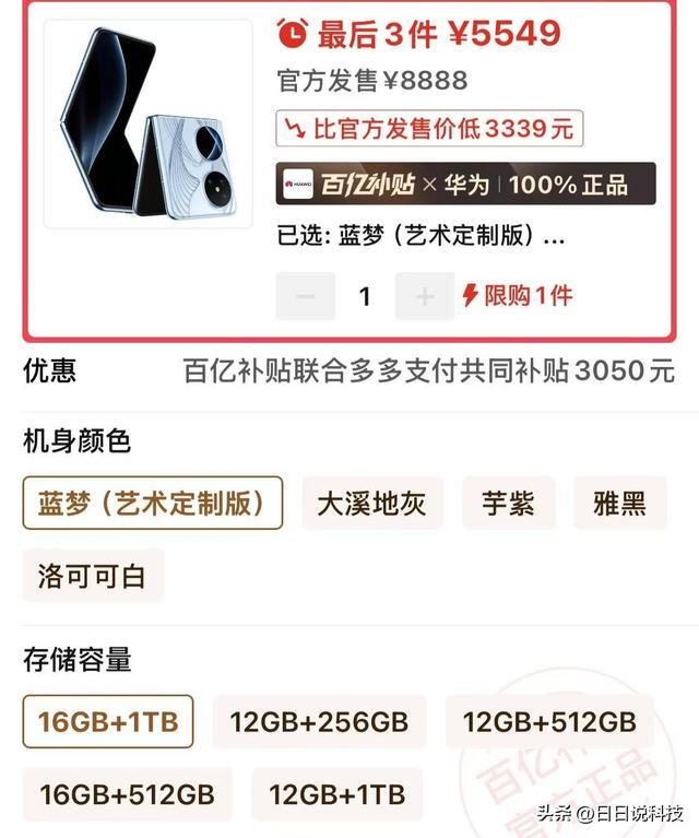 当然,最劲爆的还是价格。原价10999元的华为Pocket 2艺术定制版,如今跌至5549元,等于直接打了对折!要知道,市面上随便一款旗舰直板机都要五六千,而现在,你用同样的钱,就能买到一款旗舰级的折叠屏手机。这波操作,直接打破了折叠屏高价的神话,甚至可以说,华为Pocket 2艺术定制版已经是目前市场上性价比最高的折叠屏机型。