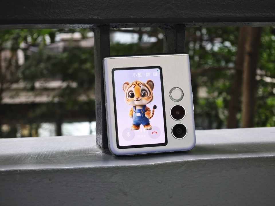 先看看这次主推的“AI萌宠”,只要合上手机,点亮外屏,然后长按音量键,一只小老虎便会出现在屏幕上和你聊天,谈天说地、畅所欲言,还是那句话,情绪价值这一块给你拉满。