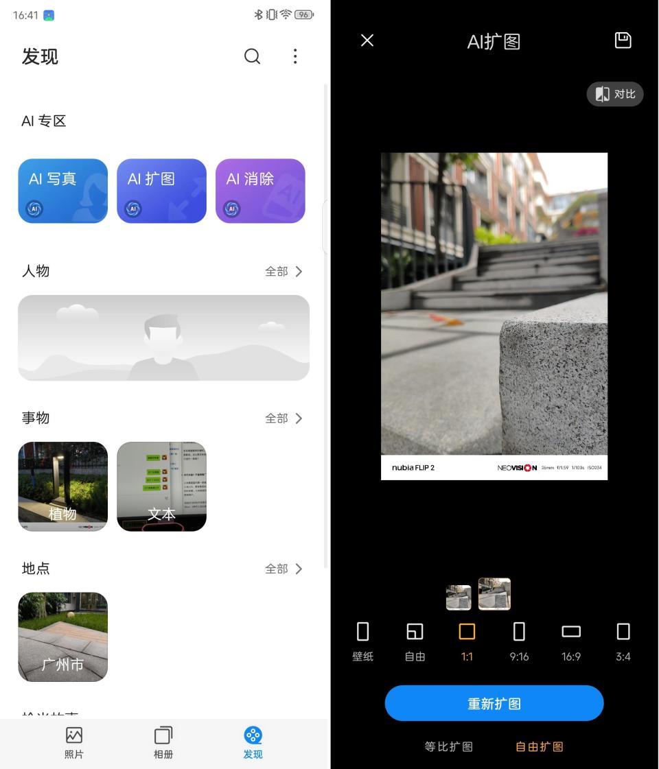 在相册中,我们也能发现AI的身影,包括 AI消除、AI扩图和AI写真在内的几大AI影像能力。