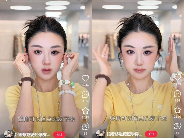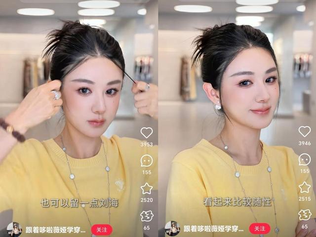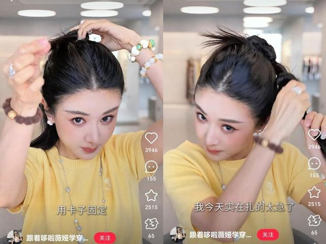在薇娅这么多的穿搭中,我发现了一个秘密,她都是梳着同一个发型,是一个精致的盘发。