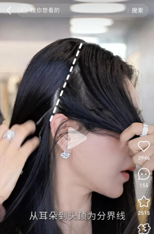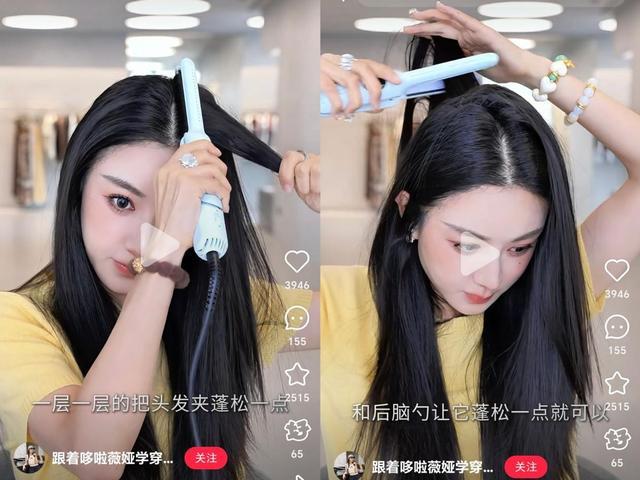 最好你的头发要齐肩或者过肩的长度,要不不好扎起来哦。先把头发中分,并且梳顺。不管你的头发贴不贴头皮,我都建议你像薇娅一样,用个夹板把发根先夹蓬松,这样可以增加颅顶的高度,除了两边头发要夹,别忘了后边的也要夹。