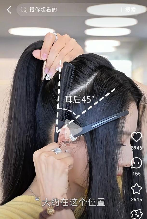 非常建议两边鬓角要留点小发丝,这一步非常重要,是营造氛围感发型的要点。
