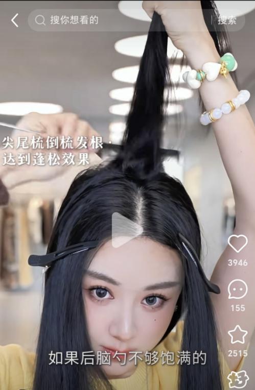 如果你觉得后脑勺还不够饱满,这个时候还可以多做一个步骤,用尖尾梳把发根打毛。
