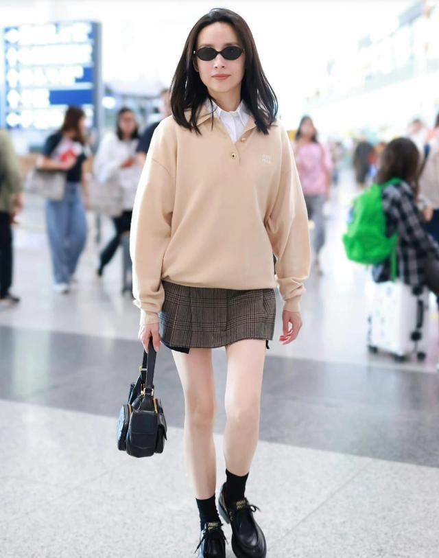 在叠穿方面,董洁也很有心得,针织衫内搭白衬衫,百搭不会出错,几乎不挑身材不挑年龄。针织衫换成了卫衣,也同样出色,建议选择宽松的版型,会更显瘦。