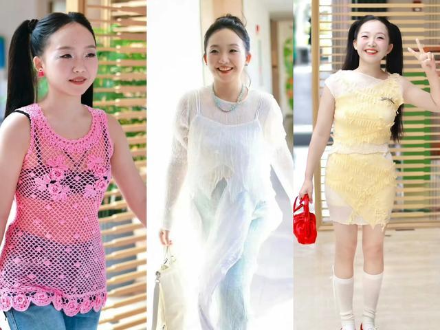首先映入眼帘的是李嘉琦的粉色镂空吊带衫搭配黑色打底和牛仔五分裤的穿搭。粉色作为多巴胺色彩之一,总能给人一种甜美、俏皮的感觉。