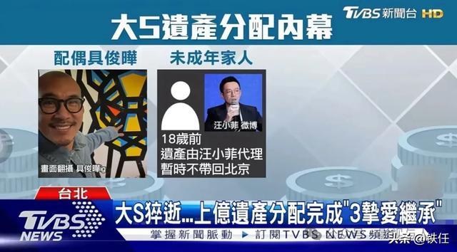 女星大S上月在东京旅游途中不幸病故之后,留下价值数亿台币的豪宅遗产如何分配,成为媒体关注的焦点,之前据知情人透露,徐家、具俊晔和汪小菲三方已经就遗产分配达成共识,方案如下:具俊晔和一对孩子平分,各三分之一,因为孩子还不到18岁,所以由亲生父亲汪小菲代管。