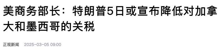 美国商务部长3月4日刚说特朗普可能会降低对加拿大和墨西哥的关税。5日,美国白宫新闻秘书就紧接着宣布山西股票配资,将对通过美加墨协定进口的汽车给予一个月的关税豁免。