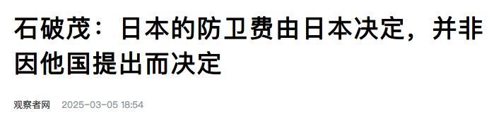 日本首相石破茂虽然没有对关税这个事儿表态,但也回绝了特朗普政府让日本提高防卫费的要求,说日本的防卫费是由日本决定的,你特朗普让我加我就加,我不要面子的吗?