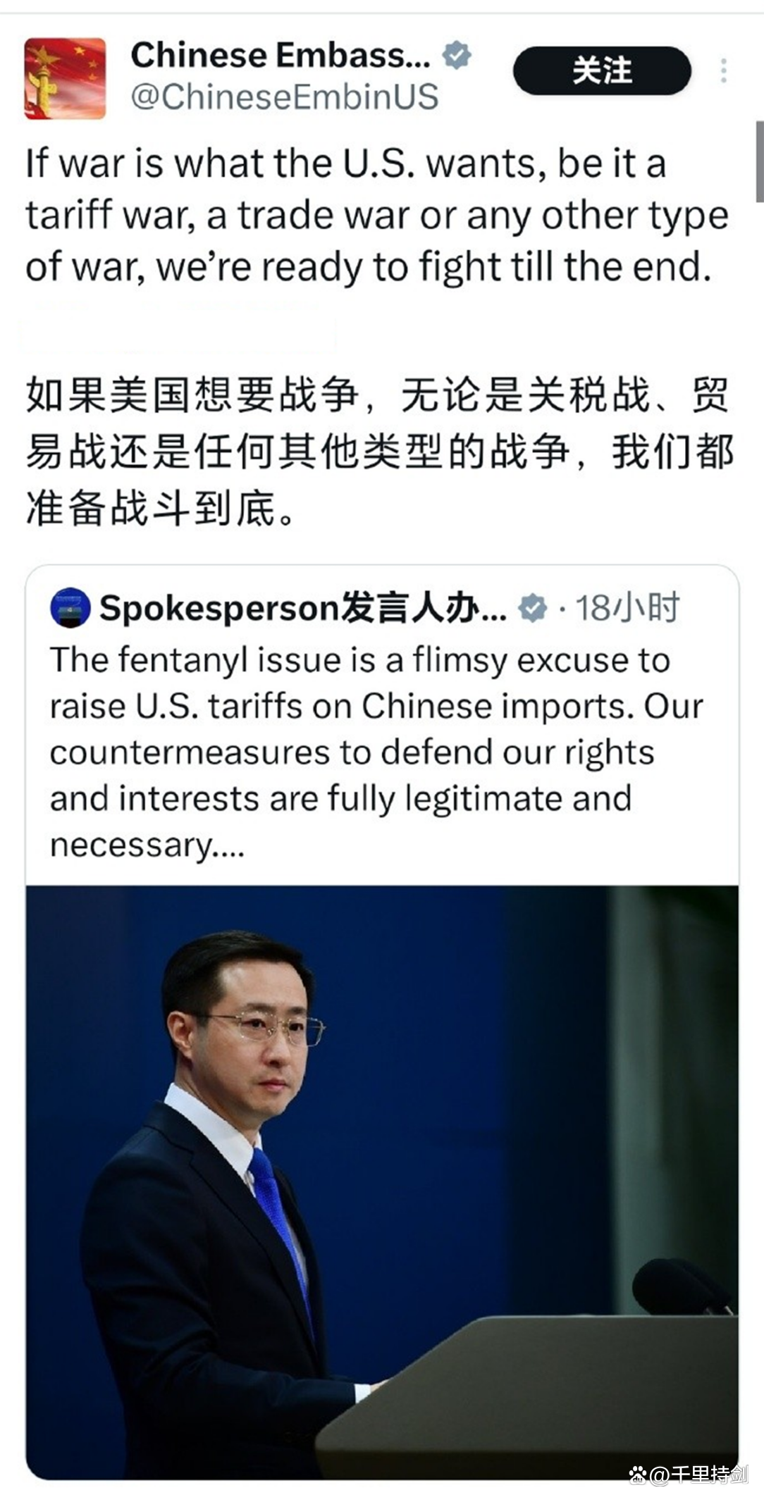 到底咋回事呢?日前,中国外交部发言人林剑用一番铿锵有力的话,敲打了美国政府。而后,中国驻美使馆把他的话翻译成了英文,写在了官号上,其中最重要的表述是:“我们准备战斗到底!”(具体大家请看下图,看看这话说得猛不猛)。