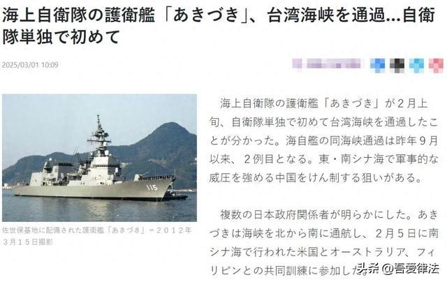 结果不知道是美国方面的授意,还是日本为了讨好美国的自作主张,3月1日据日本共同社披露,日本军舰在回航途中强行穿越台海。